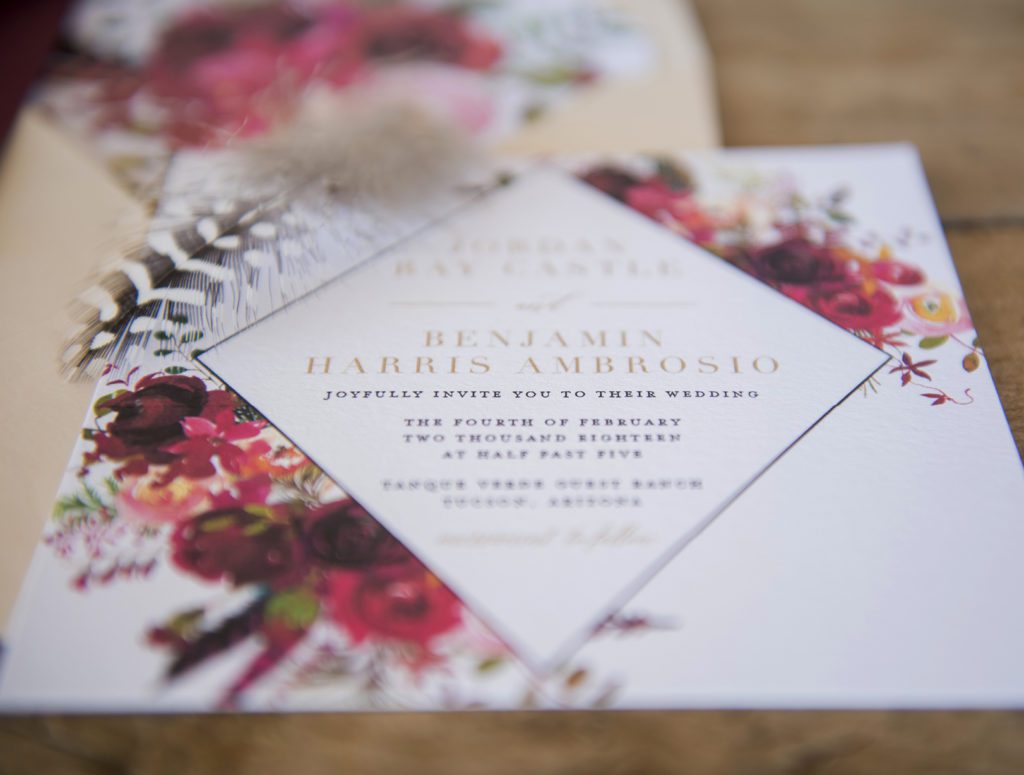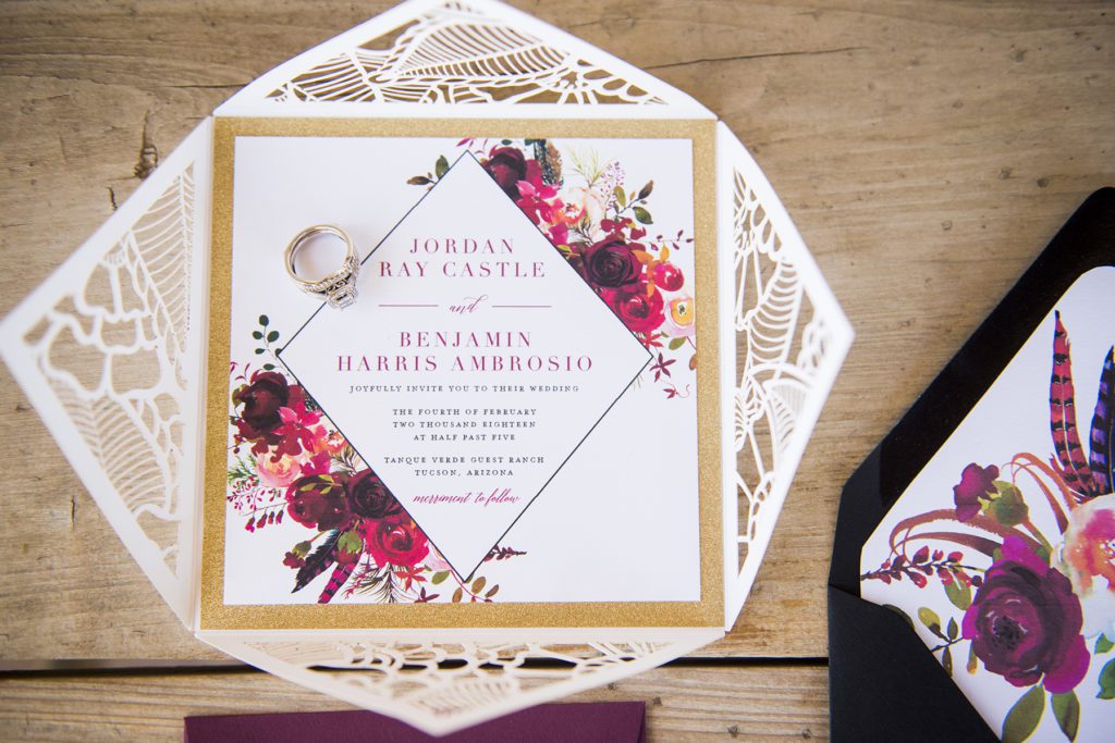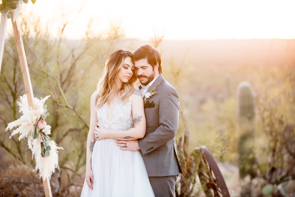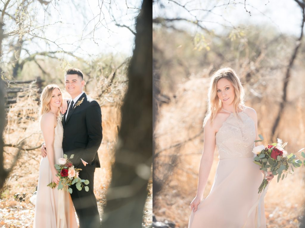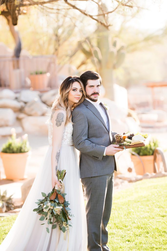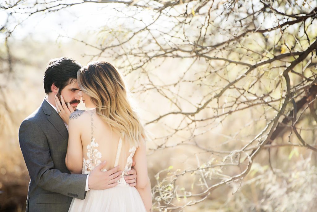 They couldn’t have asked for a better place for their styled shoot, either. Tucson, Arizona is a destination wedding location like no other—a warm desert winter wedding just waiting for adventurous couples to use. While the rest of the country shivers and snuggles under comforters to escape gray skies and sleet, it’s always sunny in the Sonoran desert, even in February.