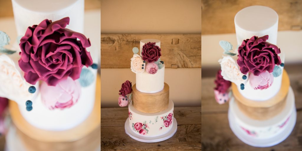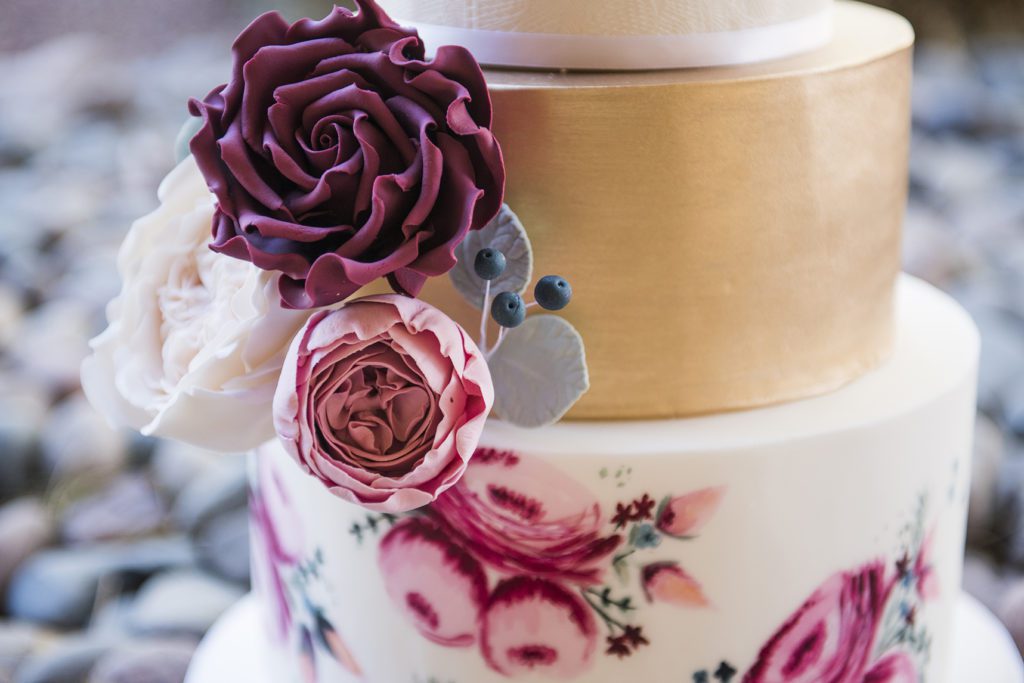 Alia Pierson, the Crumbs Cake artist, drew in some pops of color with delicate etchings on the cake itself. She may be known for her true talent at crafting icing flowers, but every bit of that cake was a masterpiece.