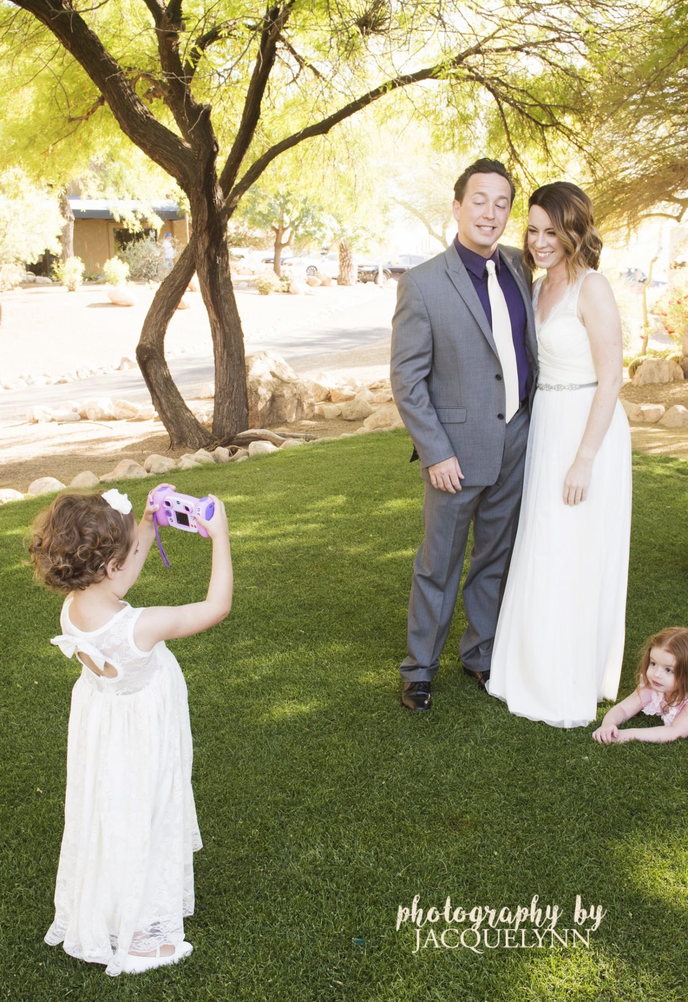Stephanie and Jeff are clients, but they are also friends. I met Stephanie a little over a year and a half ago when she contacted me to do photos of her with her daughter – she had just moved to Tucson. We got along so well we forged a friendship, and on our first date (ha ha) we got to talking about significant others (she currently didn’t have one) and suddenly, out of nowhere, Jeff (a colleague from my BNI Networking group and also my financial advisor) popped into my head as a potential for Stephanie. So I texted him, that second, and told him I knew a girl I thought he might like. And that, apparently, was that. A year and a half later, they were walking down the aisle, and I decided I might have some talent as a matchmaker. Or maybe it was just meant to be. Either way, they are perfect for each other, and they began their Forever After with a classic ceremony at the Hilton el Conquistador in Tucson’s beautiful desert, and a lovely reception with a touch of Western kitsch at the Hilton’s unique site called the “Last Territory”. The wedding was a delight for all who attended, especially the food (a tapas sampling of Jeff and Stephanie’s favorite foods they’ve started cooking together). I’m so happy for both of you!!